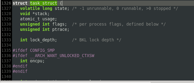 进程描述符具体定义在include/linux/sched.h的1326行往后。
