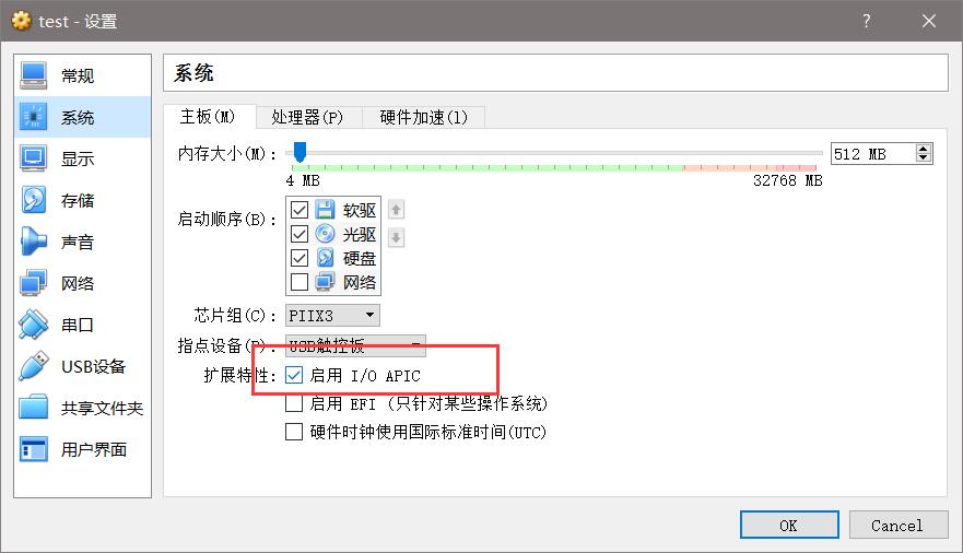 如果遇到windows虚拟机起不开的情况,尝试更改下下面这个选项,启用I/O APIC试试。